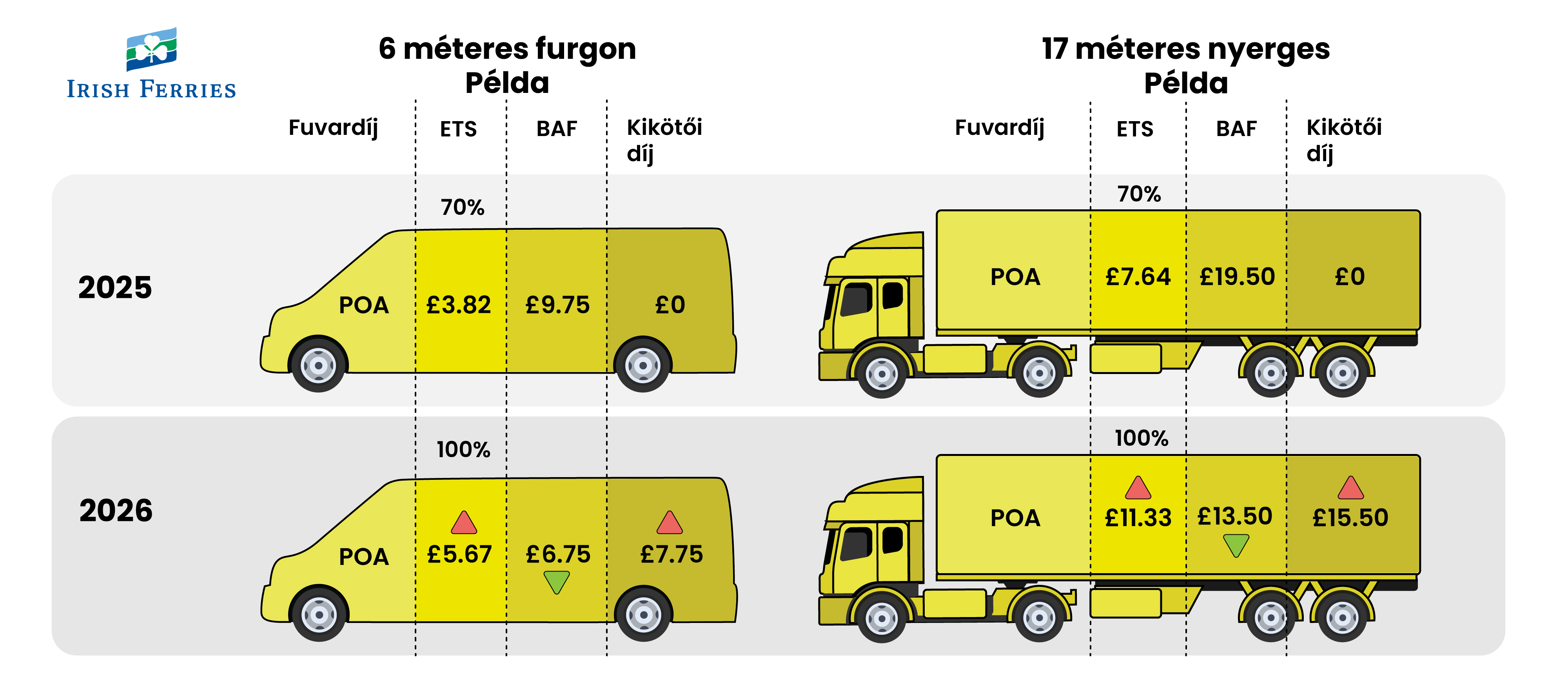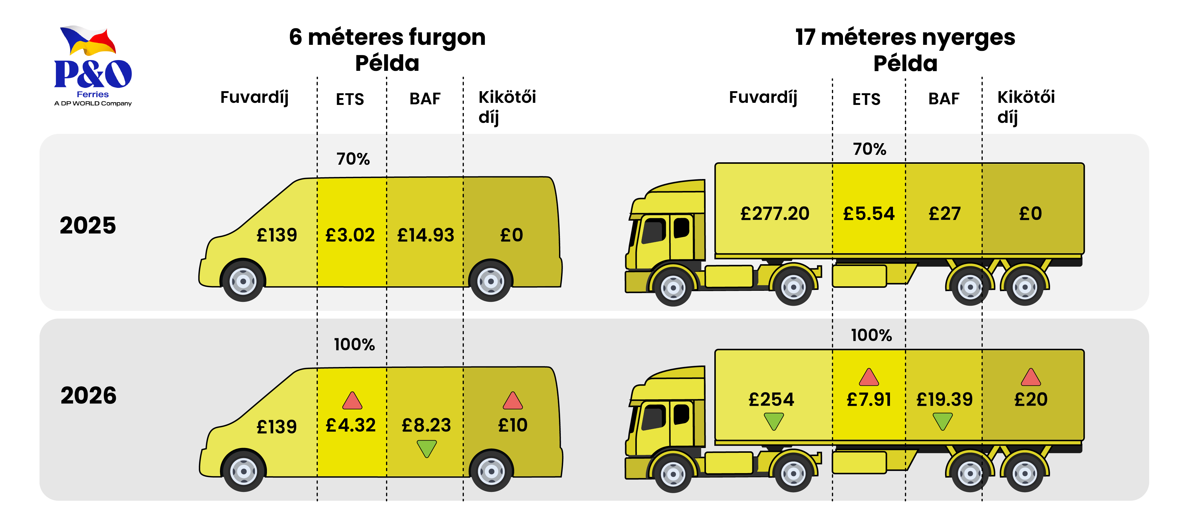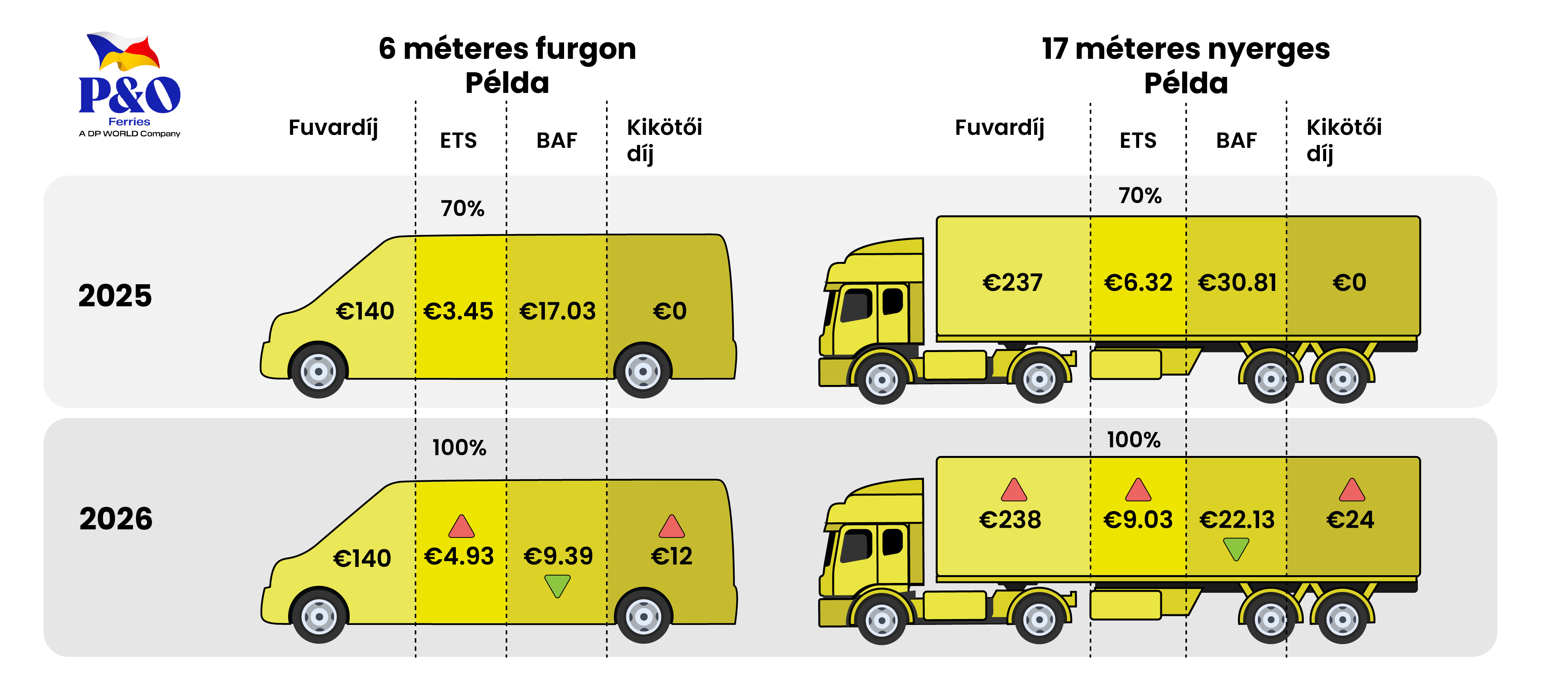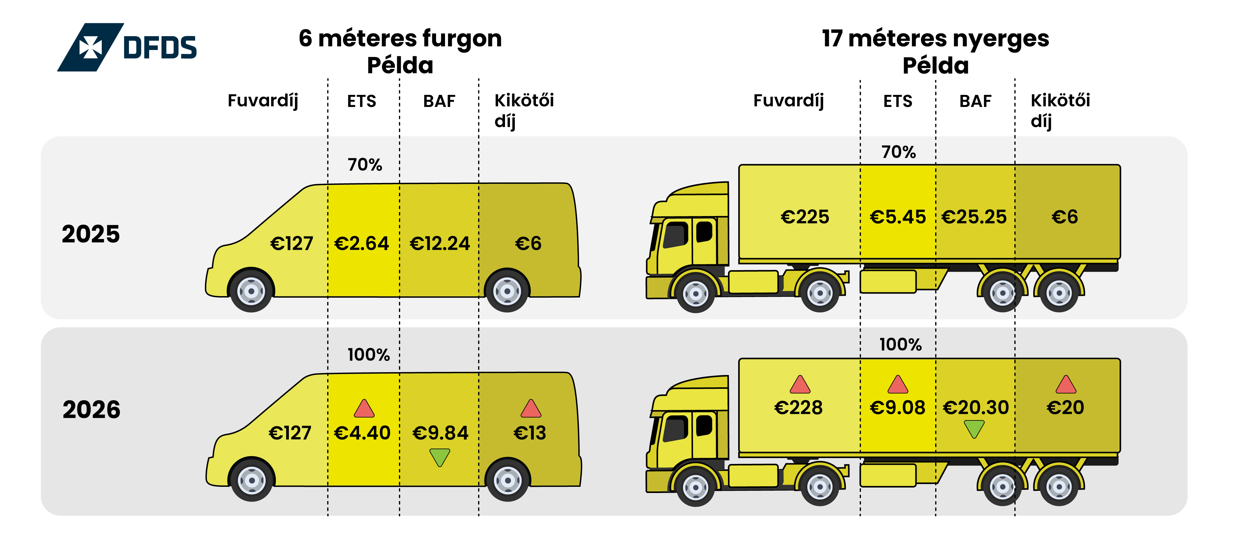 2026. január 1-jétől a DFDS, az Irish Ferries és a P&O Ferries új Dover-szoros kikötői díjat vezet be. Ez az ETS (100%) és a BAF díjakon, valamint az inflációs emeléseken felül kerül felszámításra.